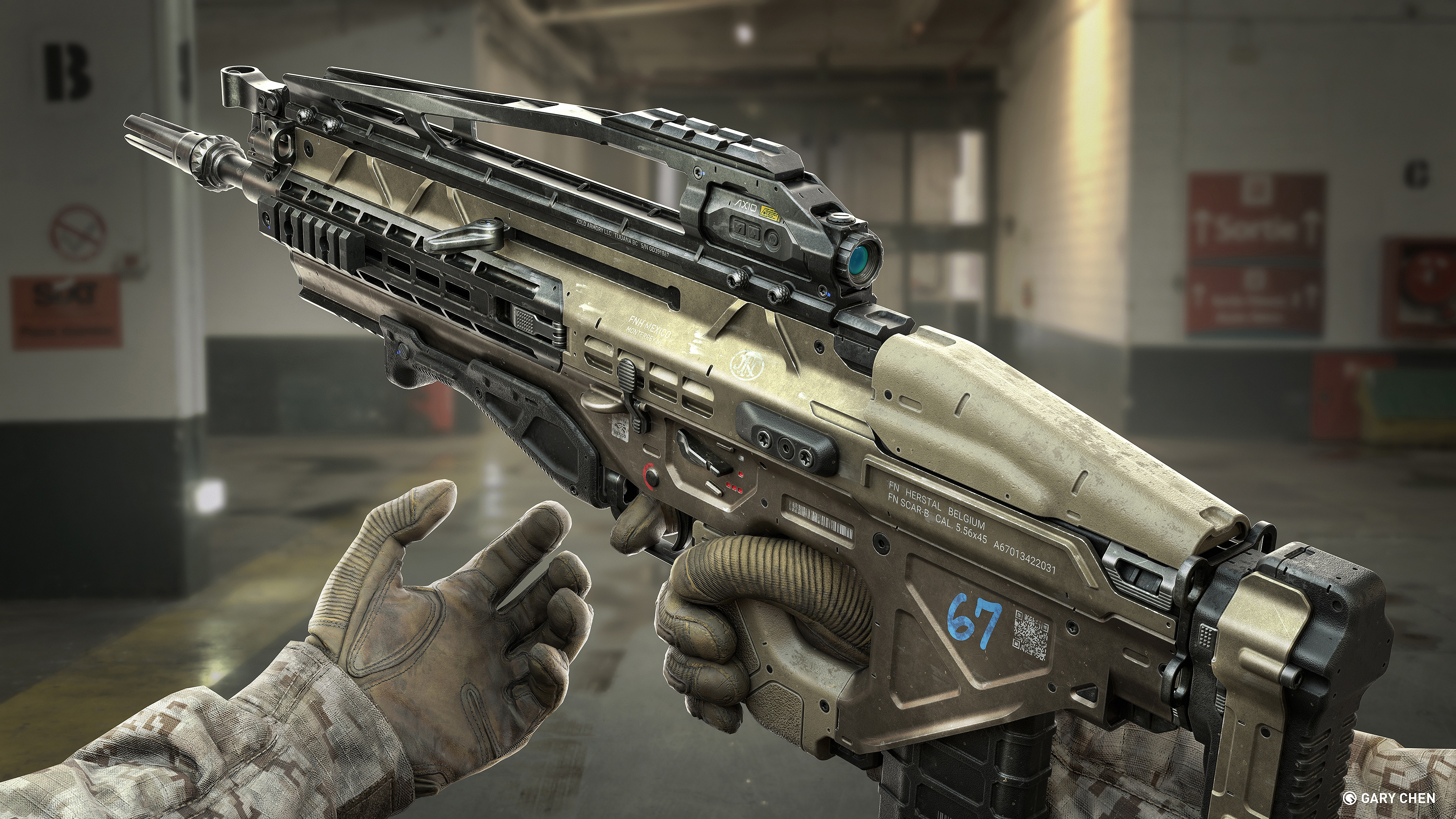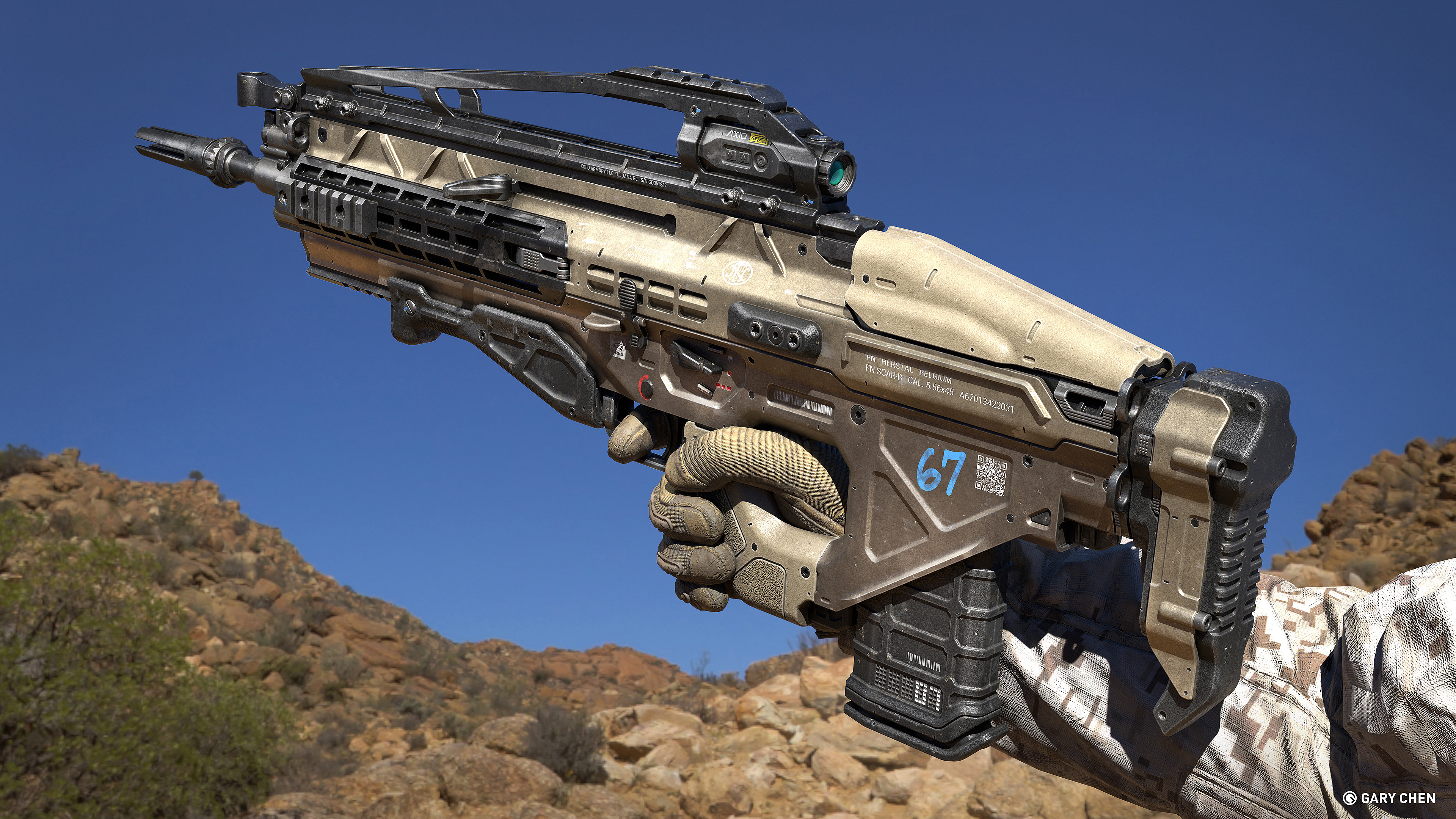 The SCAR-B is a bullpup evolution of the FN SCAR. Its compact configuration enhances maneuverability in urban and CQB environments while retaining a full-length barrel for optimal ballistic performance.
